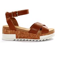 Sandalia de cuero Bottero con tiras cruzadas en la capellada, pulsera al tobillo, plataforma de corcho y suela acanalada. Comprá en E-store y te lo enviamos a donde quieras. Aprovecha nuestros beneficios.